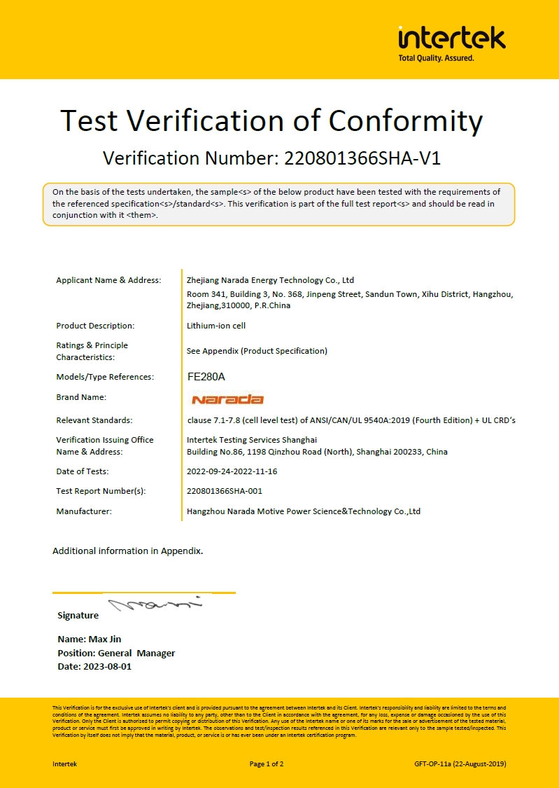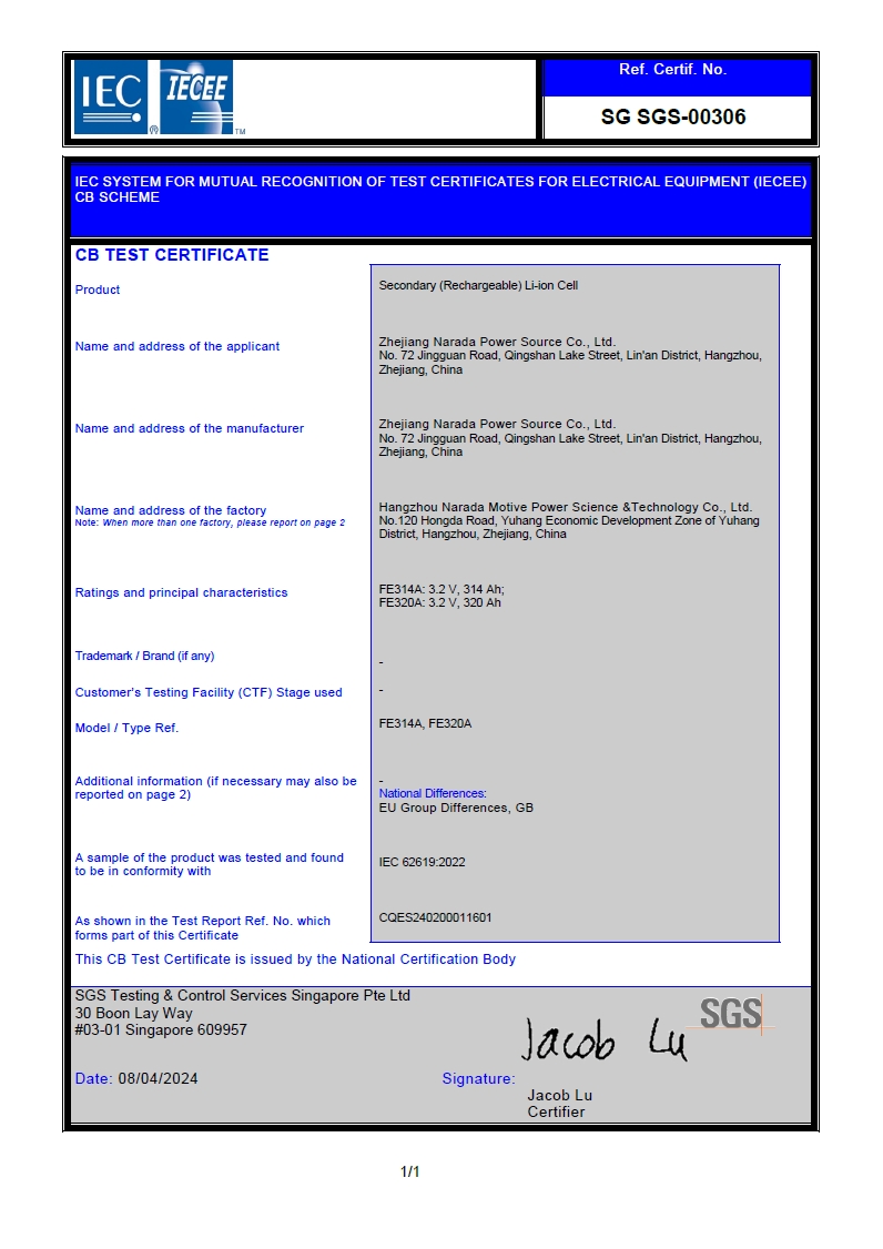 Narada Power has passed over 260 safety certifications and accreditations of global leading energy storage standards, like UL, IEC, GB, KC, etc. The improving certification systems embody our excellent strength in the energy storage industry.