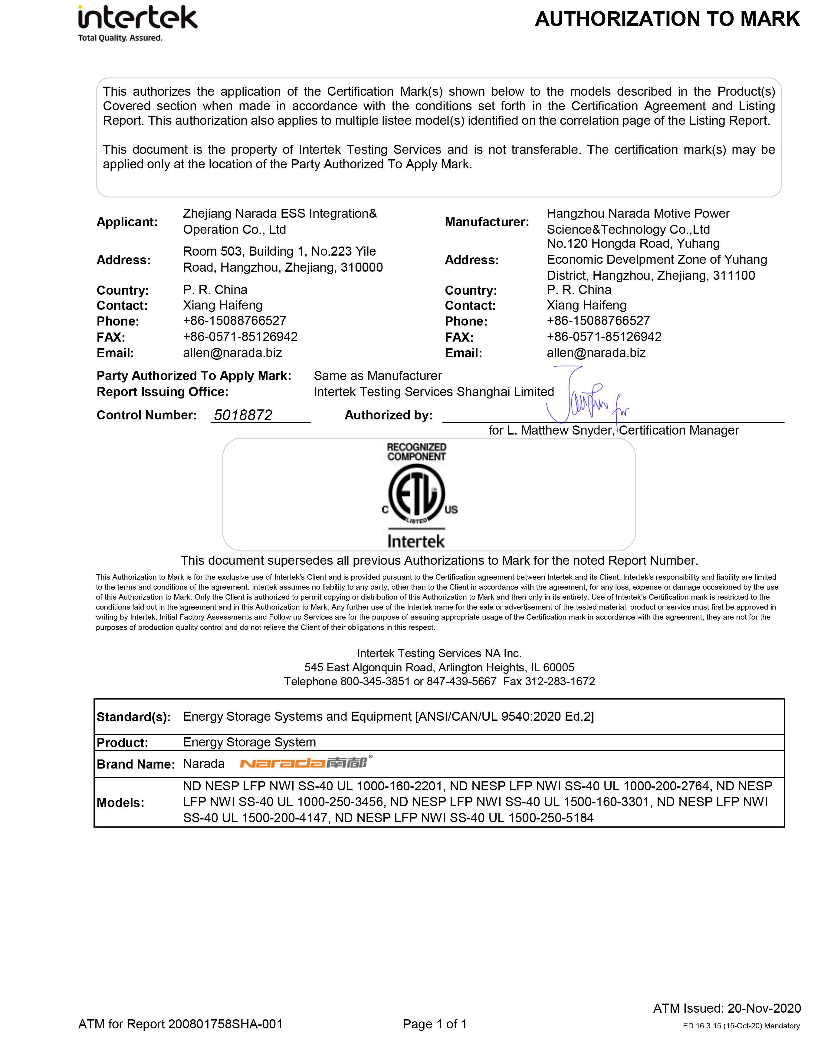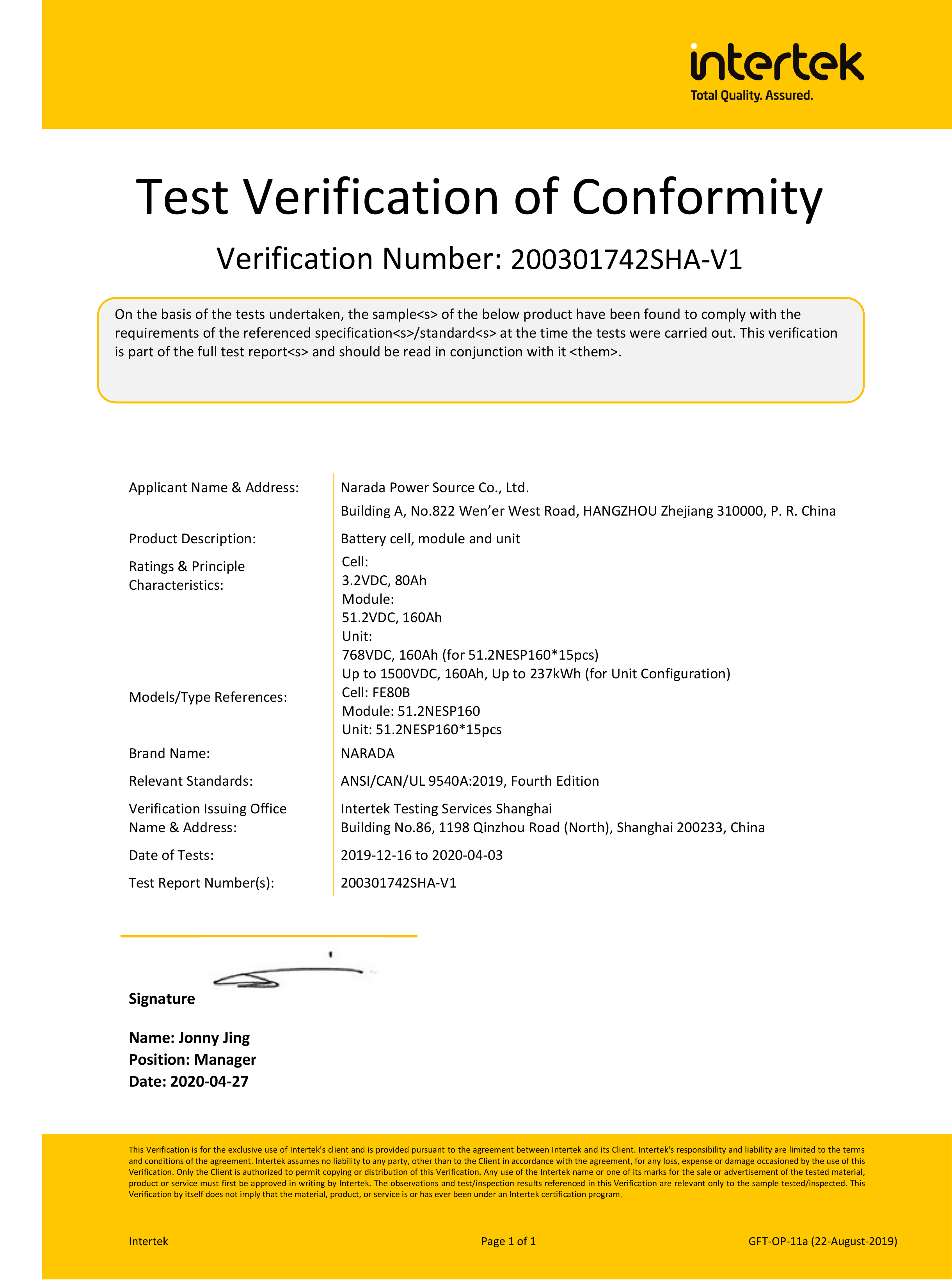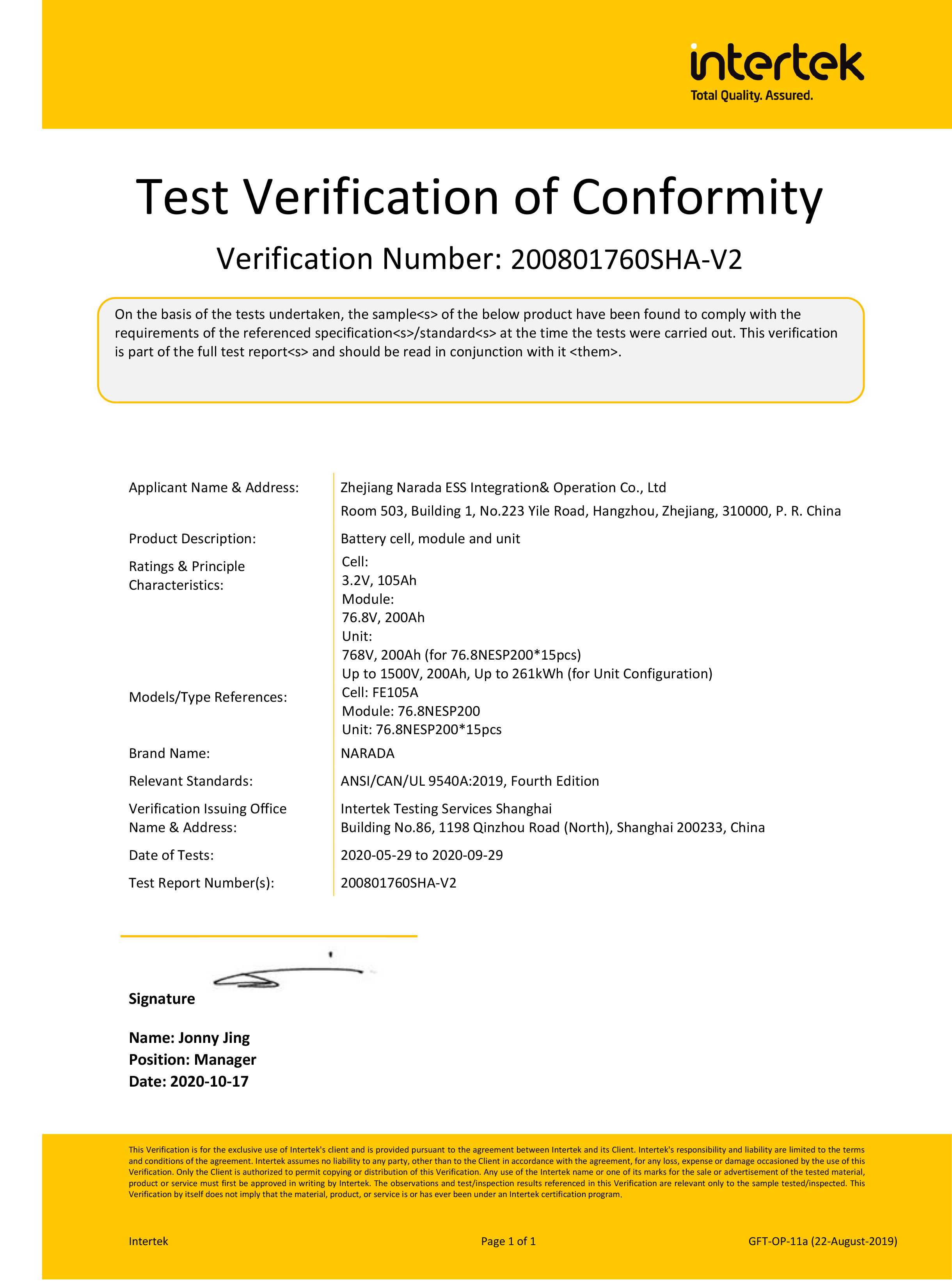 金年会电源为全球第一批通过MW级集装箱储能系统UL9540、UL9540A认证的企业。通过UL9540、UL9540A认证,意味着金年会储能系统在全球范围内具有极佳的认可度。