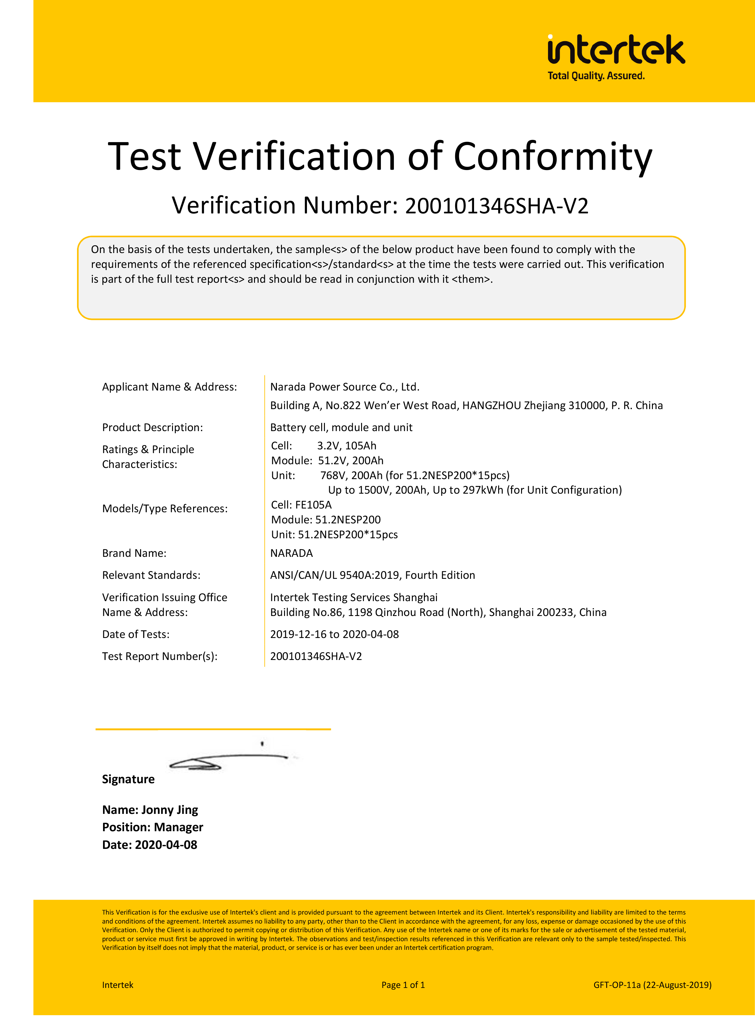 金年会电源已累计通过 140 余项 UL、IEC、GB、KC 等全球储能领先标准的安全认证认可。不断丰富的认证体系,体现了公司在储能领域的强大实力。